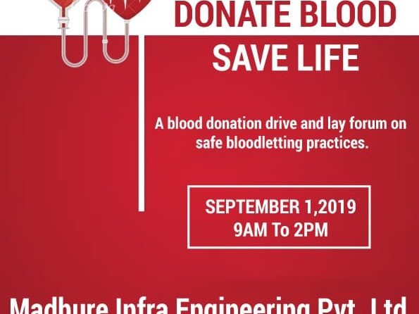On the 1st September, 2019, we the “Madhure Infra Engineering Pvt. Ltd.” Organized a successful Blood Donation Camp as well as health checkup camp in our Xrbia market yard site. Blood Donation is an important and foremost sense of duty of every human being which saves the life of many humans who needs it in urgent situation.